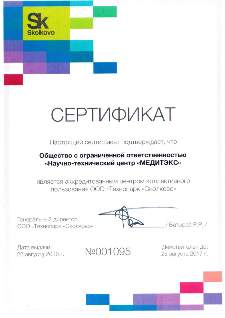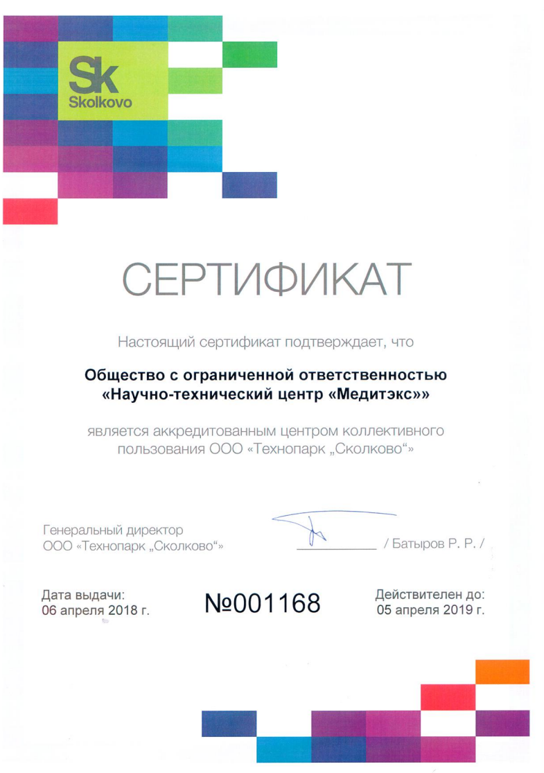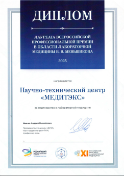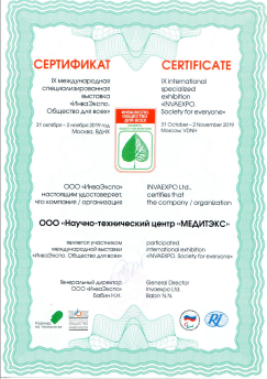 Награды и сертификаты Научно-технического центра МЕДИТЭКС